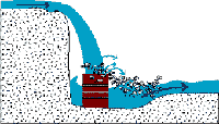 Chute supérieure à 1,40m avec une fosse de réception profonde dans laquelle se crée une émulsion d’air (eau blanche)
