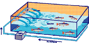 Principes : Les cascades naturelles ou artificielles permettent des échanges gazeux importants, puisqu'elles allient un étalement de la surface exposée à l'air à de fortes turbulences et brassages résultant de la chute.