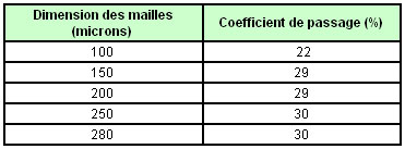 ¤ Transparence théorique des surfaces filtrantes équipées d'un tissu métallique type ARMEDIA INOX.
