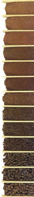 Pour les aliments larvaires, des additifs très spéciaux sont employés (attractants, enzymes...). Le contraste de couleur entre particule et le système d’élevage peut aussi modifier la prise d’aliment.