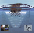 La caméra est conçue pour être utilisée dans les conditions difficiles d'une ferme aquacole.La caméra est très sensible et se place dans la cage pour filmer vers le bas ou vers le haut. Elle est reliée au système d'alimentation ce qui permet au fermier de suivre automatiquement l'alimentation. Elle peut être également actionnée manuellement à l'aide d'un panneau facile d'usage.